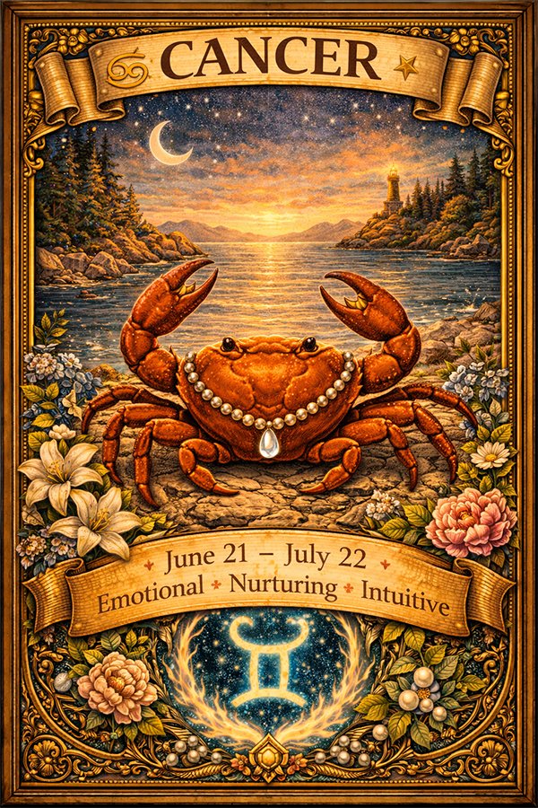 Read MoreCancer (Karka Rashi) – Overview Basic Identity Sanskrit Name: Karka Symbol: The Crab Gender: Female Tattva (Element): Jala (Water) of the river Guna: Sattviki Purushārtha: Moksha (Emotional liberation & inner...